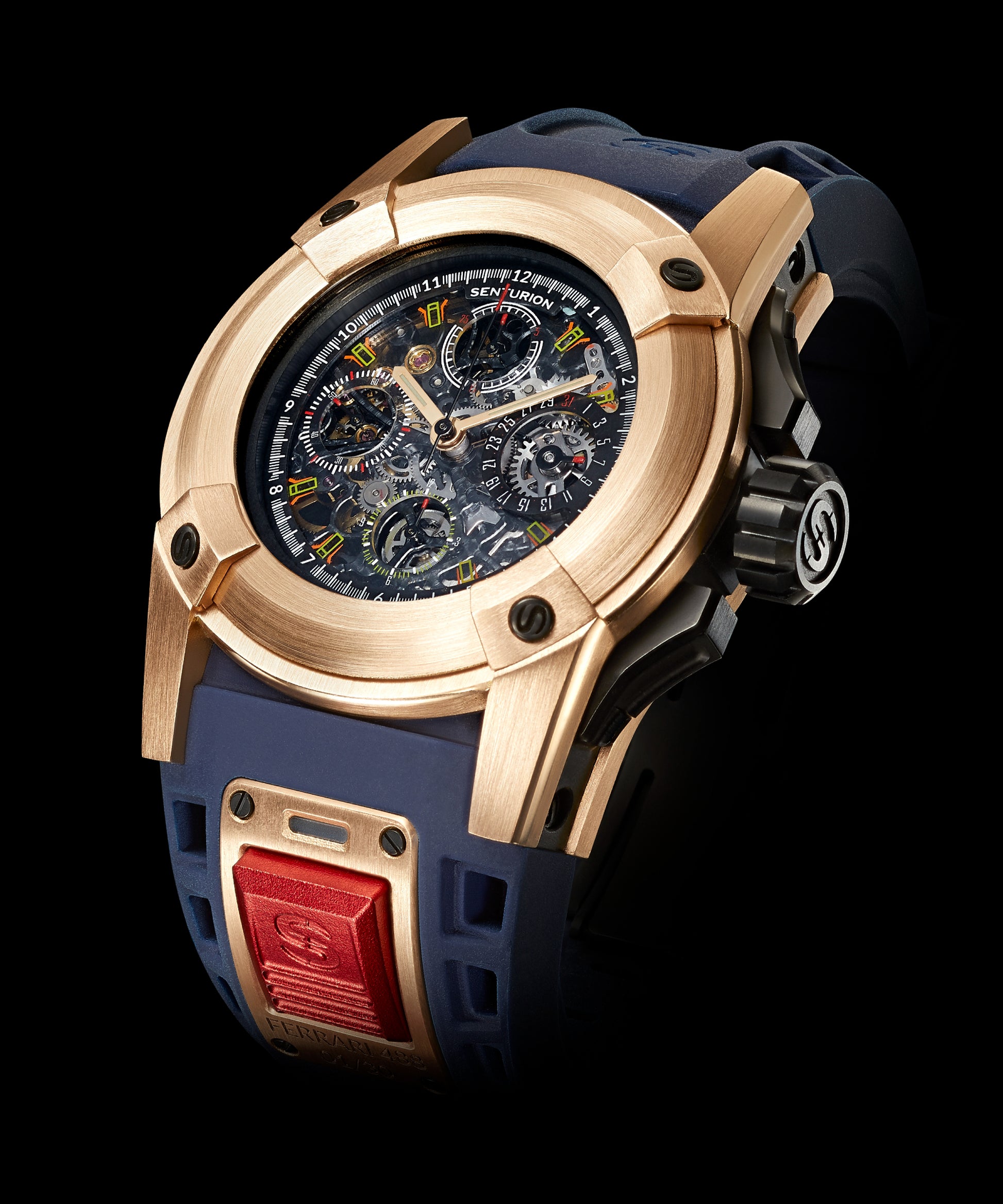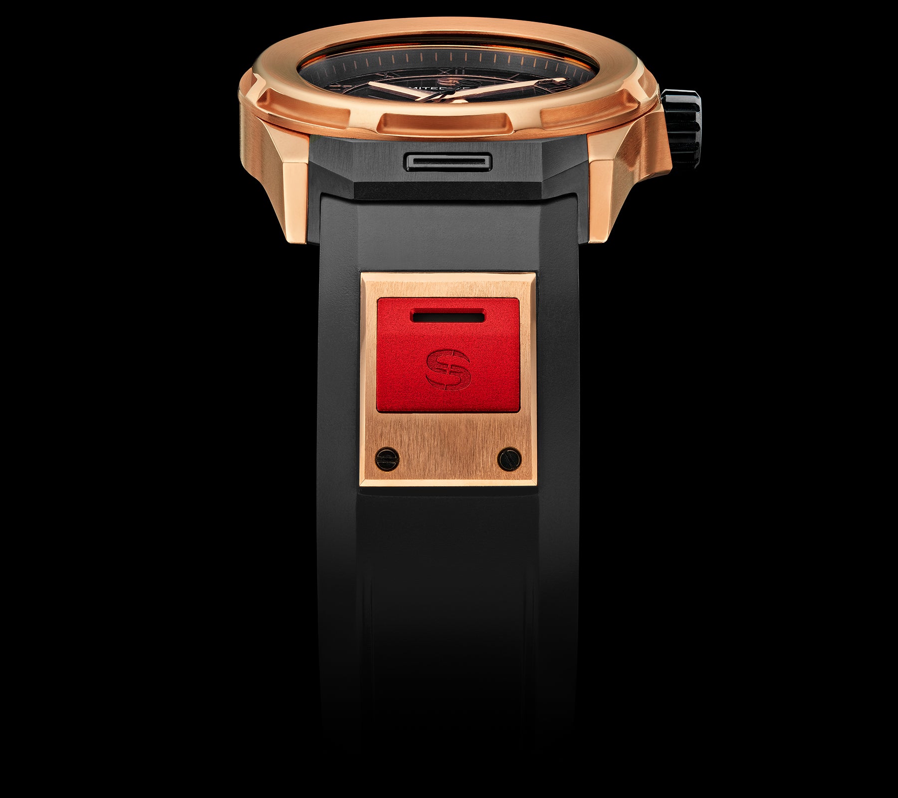 Solid 18k rose gold upper and lower body casing. PVD-coated solid double-walled titanium core. Precision automatic Y-design Swiss-made and tuned skeleton movement. Bespoke rose gold hour and minute hands, quickset date complication. 46mm case billet machined from Ti6AI4V grade titanium. 42 Hour power reserve, Automatic movement. Water resistant to 5 Bar.
