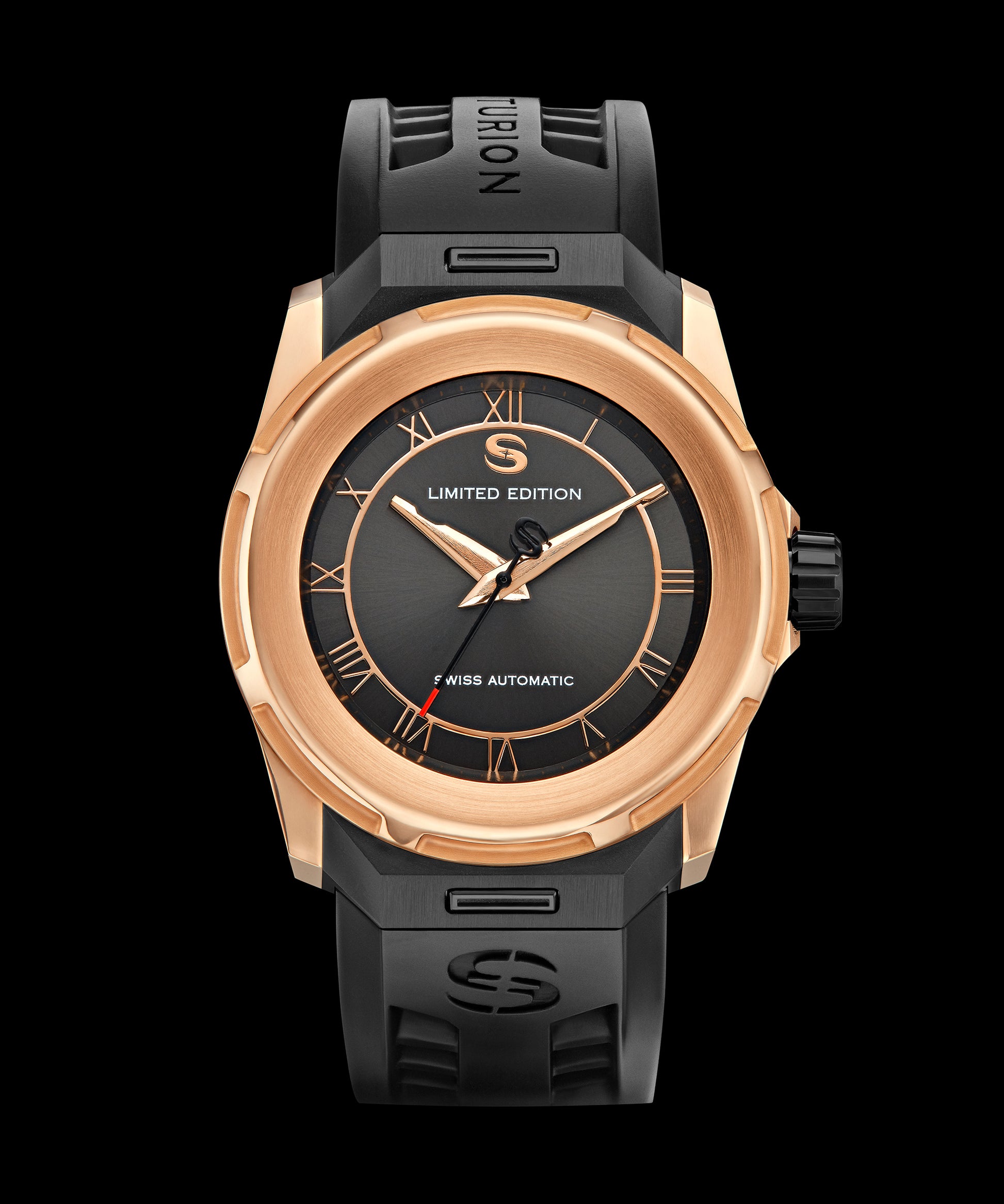 18k Brushed Rose Gold watch case. Black sunbrush dial. 42 Hour power reserve, Automatic movement. Water resistant to 5 Bar.