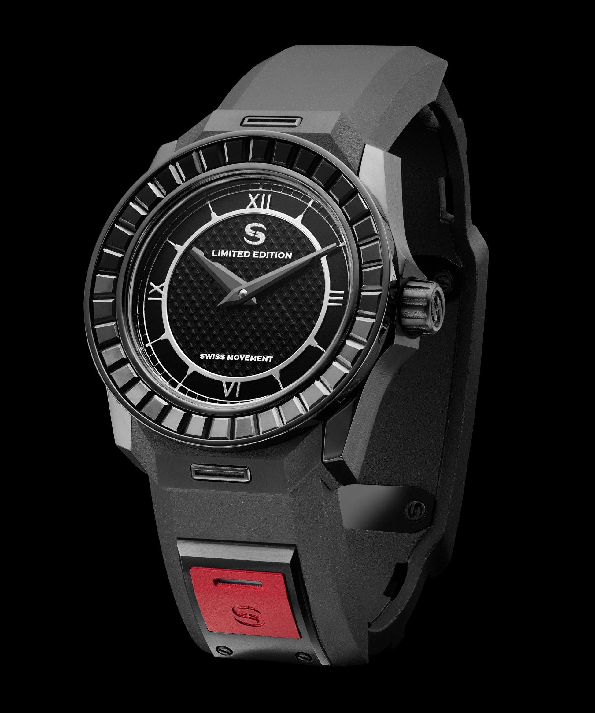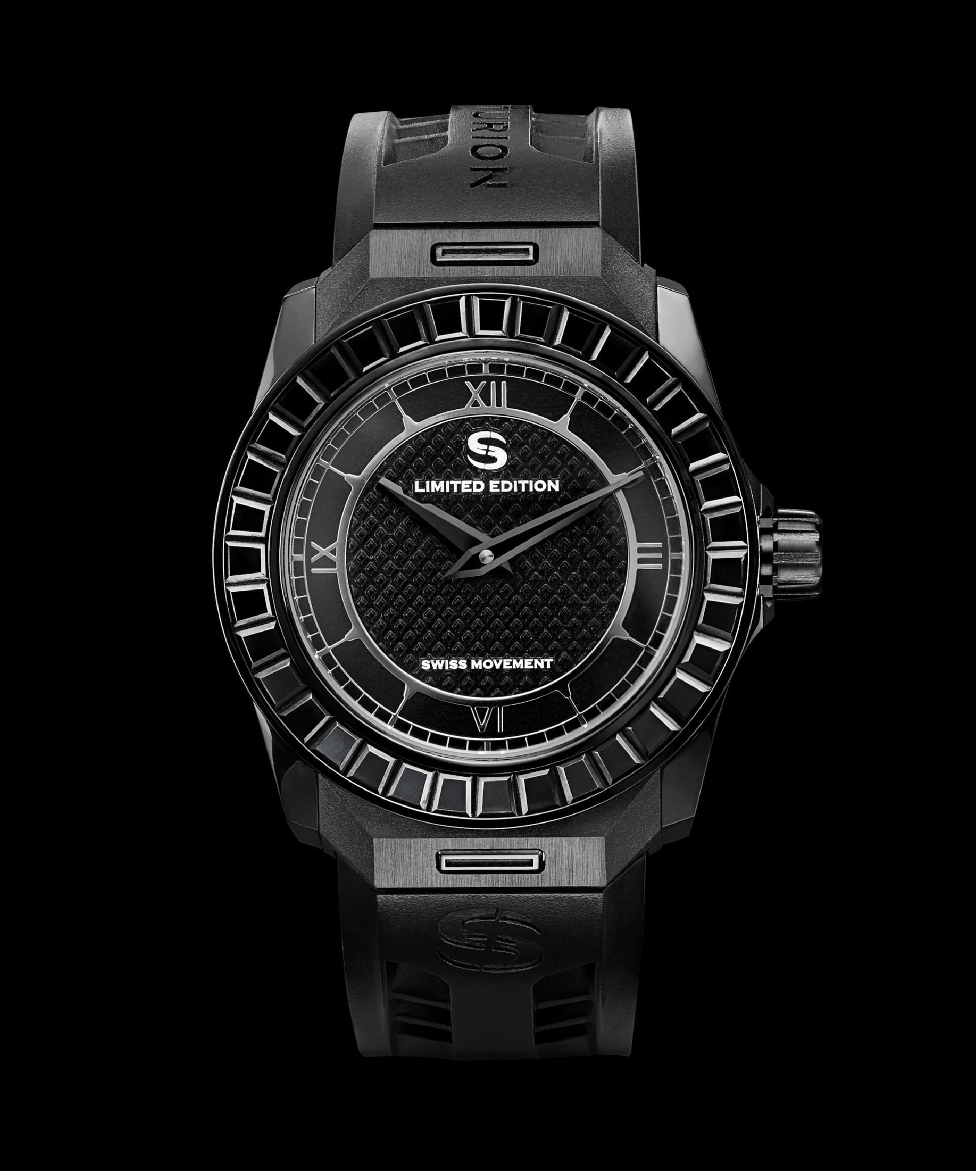 PVD Titanium watch case with 35 Polished Onyx baguette Bezel. 42 hour power reserve automatic movement. Water resistant to 5 Bar.